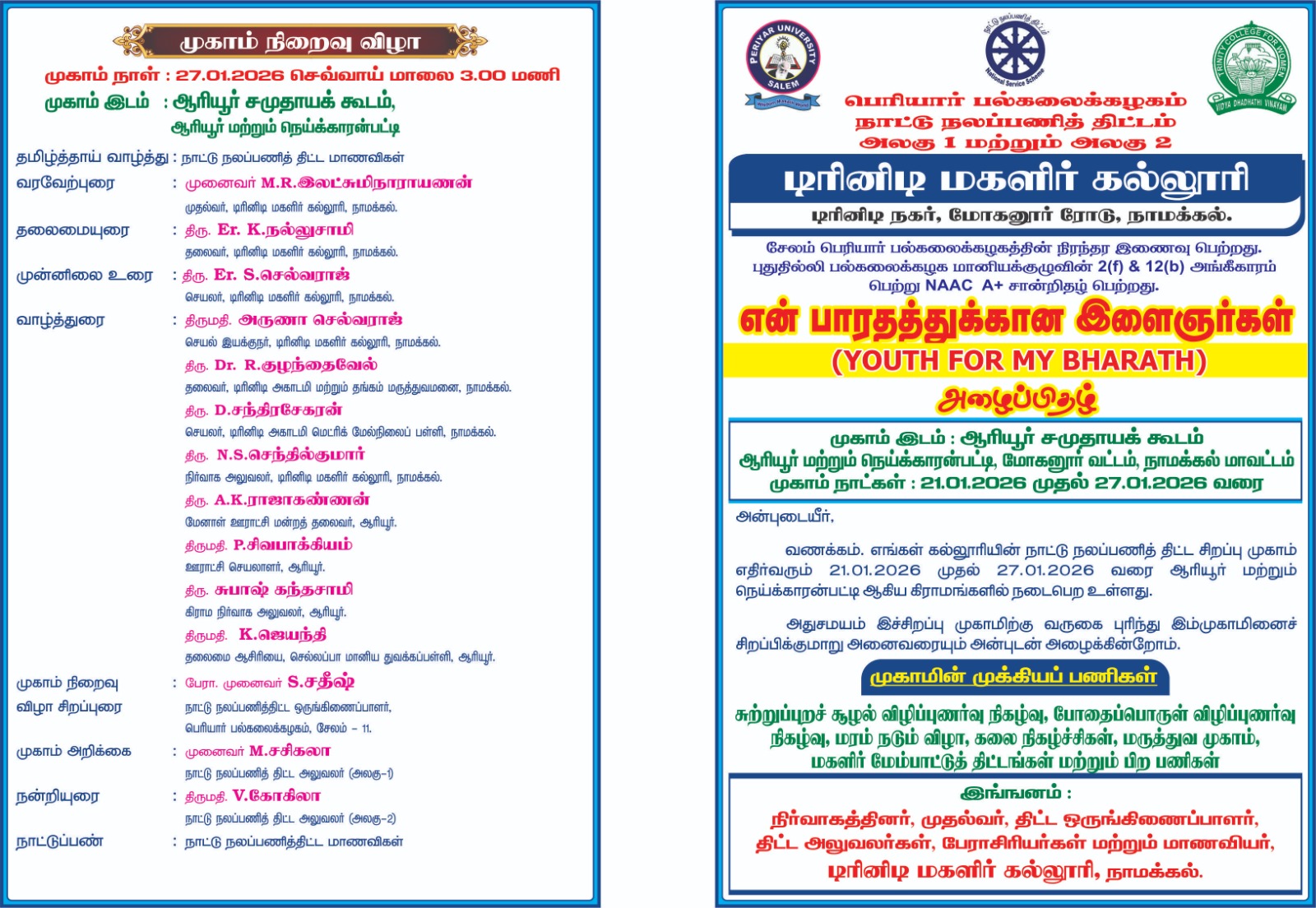 The Institution’s Innovation Council, in support of the Departments of Physics and Mathematics, Trinity College for Women, Namakkal, observed “National Youth Day” (Rashtriya Yuva Diwas) on 12th January 2026 in the College premises.