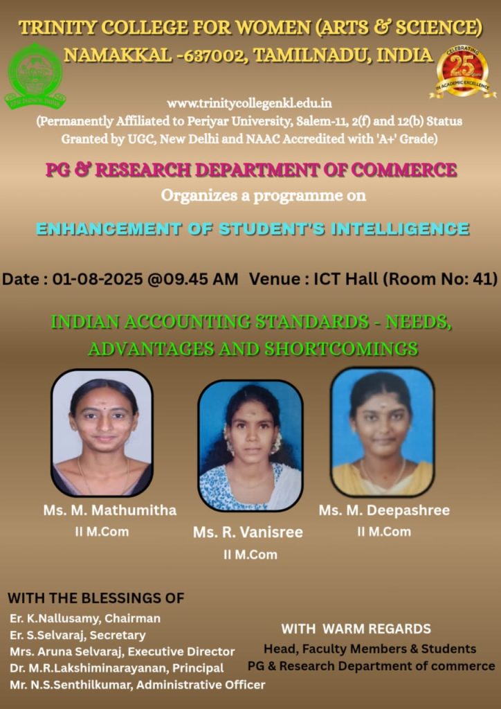 0101.08.2025CommerceIndian Accounting Standards – Needs, Advantages & ShortcomingsMs. M. Madhumitha,Ms. R. Vanisree &Ms. M. Deepa Shree,II M.Com.,Trinity College for Women, Namakkal