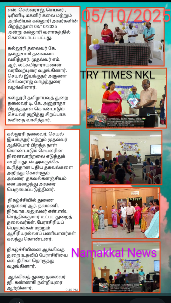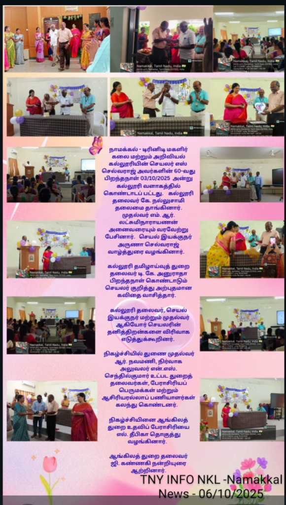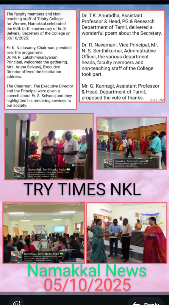 Today (03.10.2025), our Trinity College for Women, Namakkal came together to celebrate the 60th birth anniversary of Er. S. Selvaraj, Secretary of the Institution.