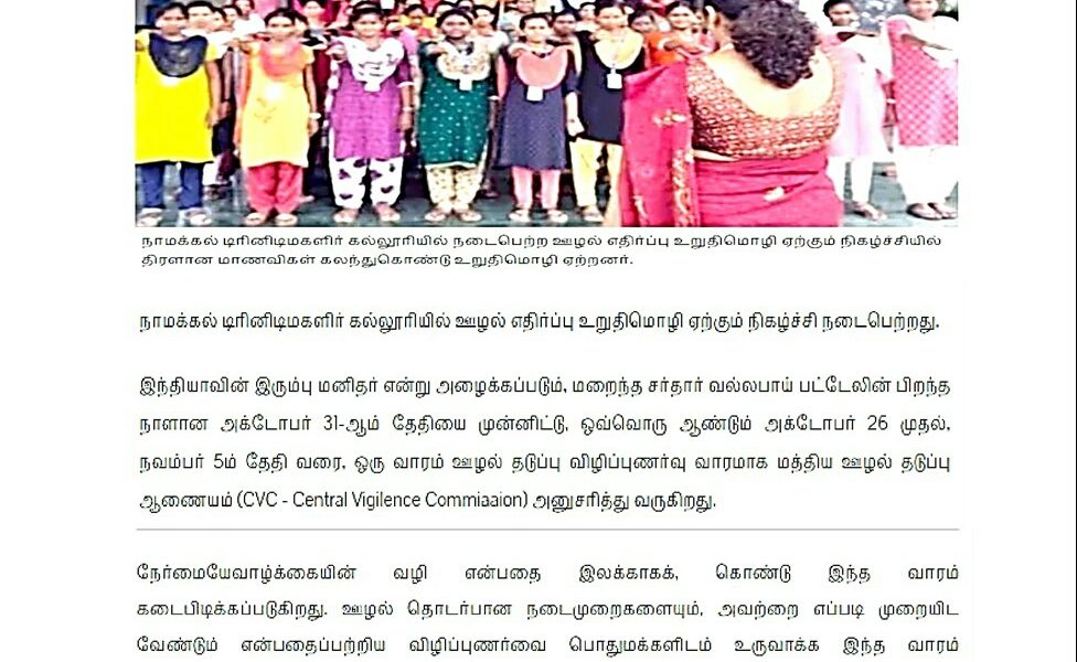 Observation of Vigilance Awareness Week: 30.10.23 to 05.11.23