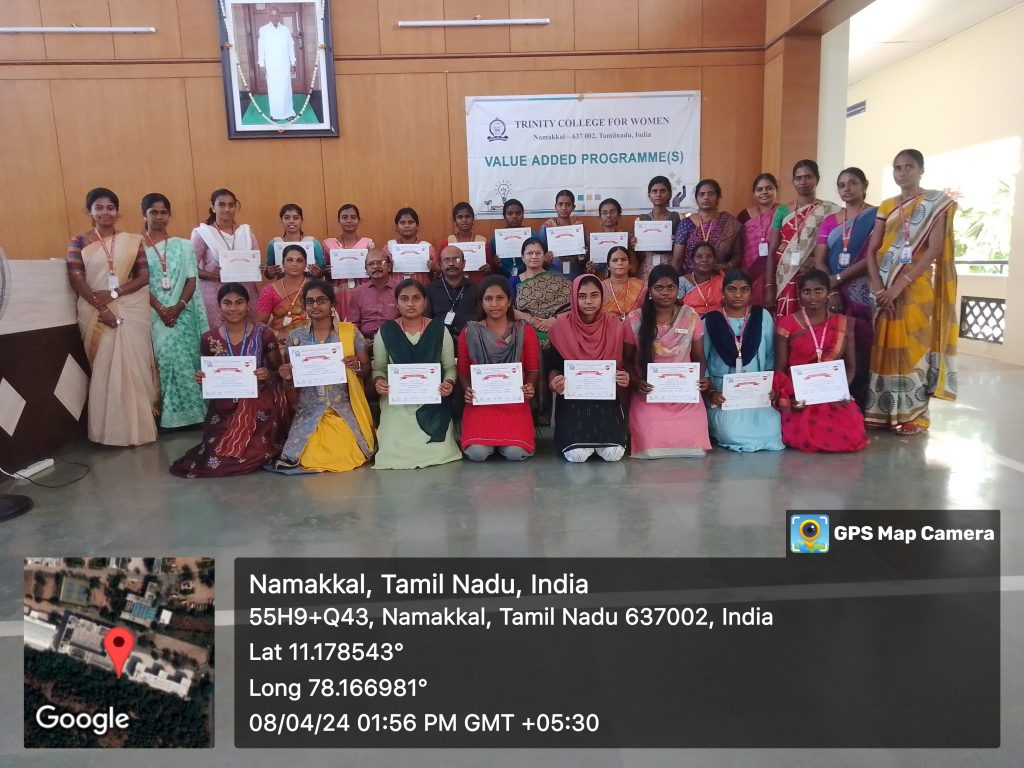 Apart from the Periyar University syllabus, our Trinity College for Women, Namakkal, conducted the various VAP (Value Added Programme) courses for the sake of our students under the auspices of the Value Added Programme Cell.