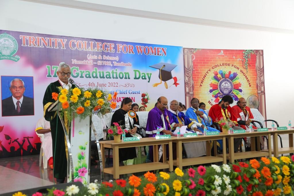 Trinity College for Women, Namakkal celebrated its 17th Graduation Day on Saturday, the 4th June 2022 in the place of Trinity Auditorium.