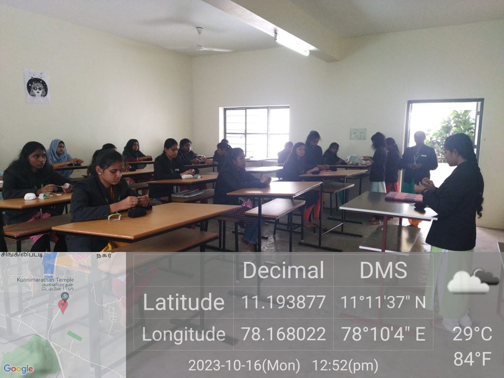 | 01 | 16.10.23 | Costume Design and Fashion | Pom Pom Techniques | Ms. A. SafaII B.Sc., CDF Trinity College for Women, Namakkal |