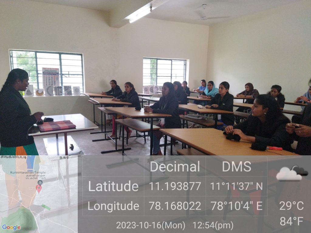 The College enables the students during their course, develop leadership skills, increase personality traits and strengthen intelligence through motivation for individual talent and to get rid of stage fear. Most of the students take active part in such programmes and they shape themselves to handle classes for their batch mates and juniors. Concurrently they achieve self-growth besides the university syllabi in addition. The below said students of CDF, Ms. A.Safa and Ms.G. Rubanasri are greeted.