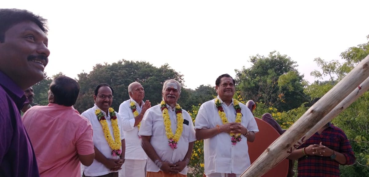 The Promoters of Trinity Academy Educational Institutions, Dr. R. Kulandaivel, Mr. PRS P Palaniswamy, Mr. D. Chandrasekaran, Mr. Rama. Srinivaasan, Mr. P. Dhayalan, Mr. S. Gopal, Mr. PSK. S. Selvaraj, Mr. J. Arunkumar, Mrs. Aruna Selvaraj, Dr. Malliga Kulandaivel, Mrs. Santhi Nallusamy, Mrs. Sellam Palaniswamy, Mrs. Usha Srinivasan, Mr. P. Prasanth, Mrs. Kavitha Prasanth, Mr. K. Sankarapandian, Inspector, Namakkal Town Police Station, Namakkal, Sivachariyars Mr. Ram Deepesh Umapathi Sivam, Mr. N.K.S. Balamurugan, the sculptor Mr. L. Ganesan, Mr. S. Somasundaram, Principal, and Mr. R. Ramesh, Vice Principal, of Trinity Matric Higher Secondary School, Dr. M.R. Lakshiminarayanan, Principal, Dr. Arasuparameswaran, Director-Academic, Mr. N.S. Senthilkumar, Administrative Officer, the various department heads, faculty members, and many of the students and the public in and around Namakkal also took part in that ritual ceremony.