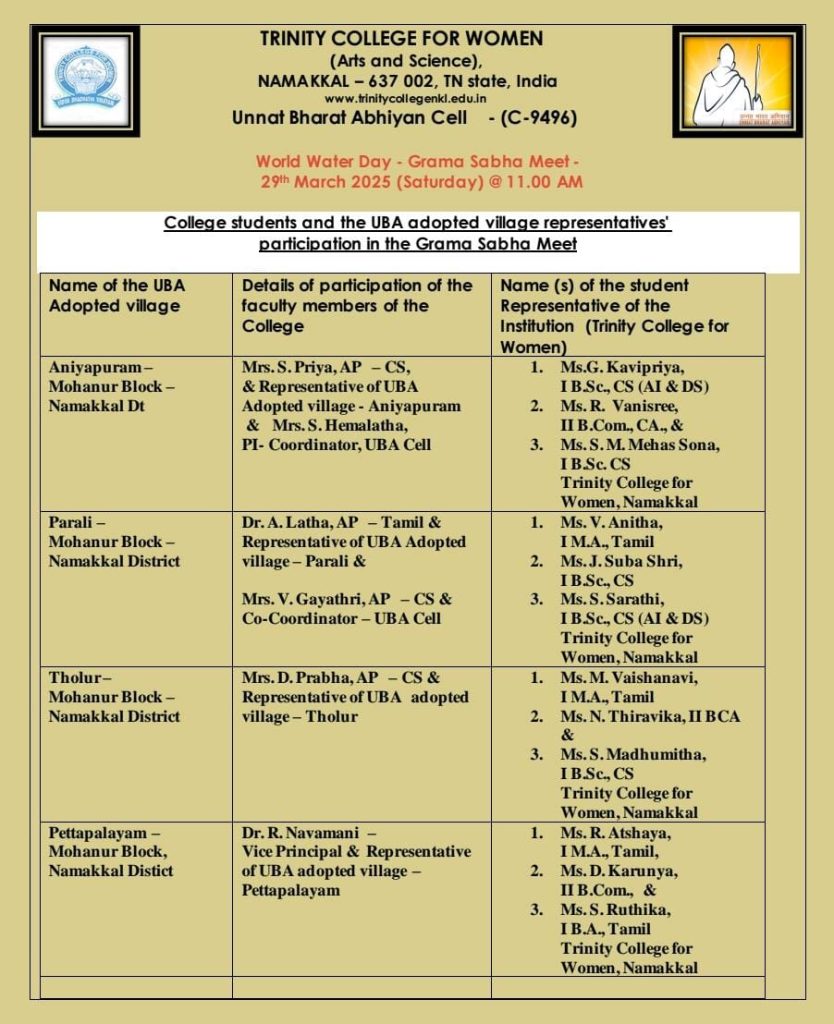 29.03.2025 – World Water Day – uba cell – Adopted Villages – Grama Sabha Meet