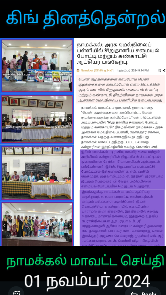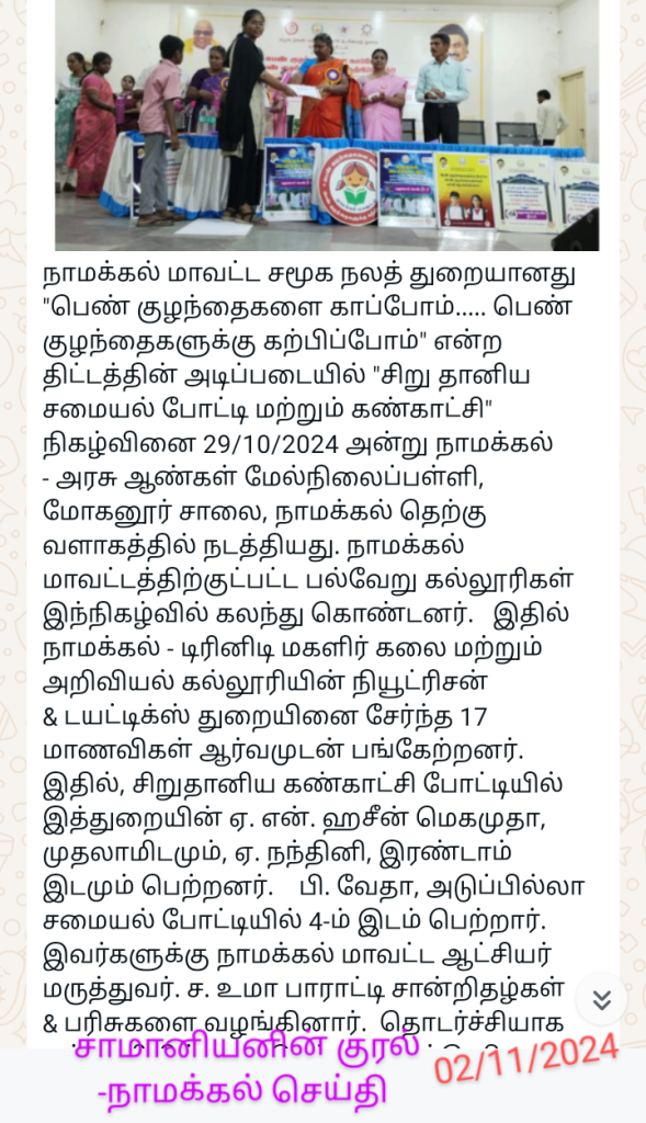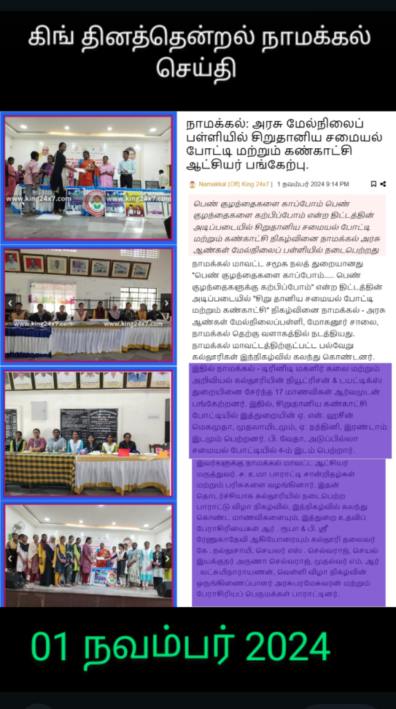 29.10.2024 – Namakkal District Level Millet – Competition – Nutrition and Dietetics
