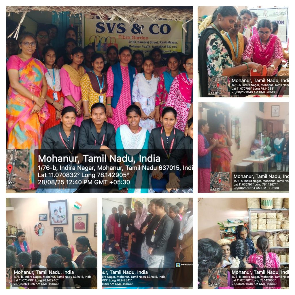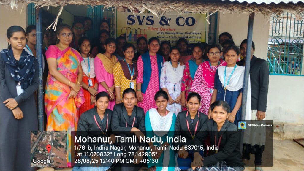 35 students along with the four faculty members of Nutrition and Dietetics (Mrs. R. Rupa, Ms. P. Sri Renugadevi, Mrs. S. Bharathi and Ms. A. Nandhini), Trinity College for Women, Namakkal went on an Industrial Visit on 28th August 2025 at the premises of M/s. SVS & Co, Fiber Industry, Rasipalayam, Mohanur Taluk, Namakkal District.