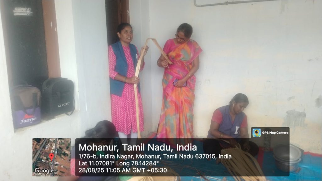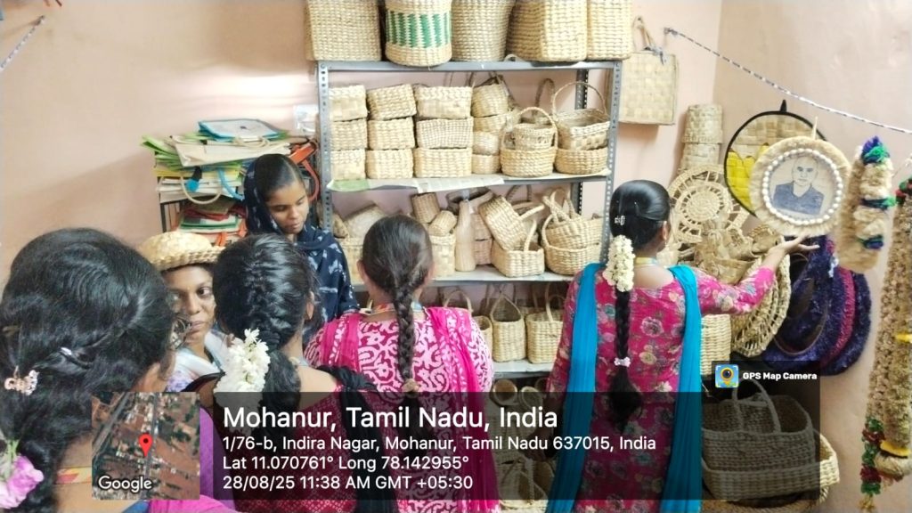 Mrs. V.S. Suganthi, Director of M/s. SVS & Co. gave a brief introduction about the industry and explained the transformation of banana stem waste, river grass and coconut broom sticks into sustainable and market-ready products to the students and faculty members. In addition, they demonstrated the production of Eco- friendly products like Pooja Basket, Laundry Bin, Fruit Basket, Etc.,
