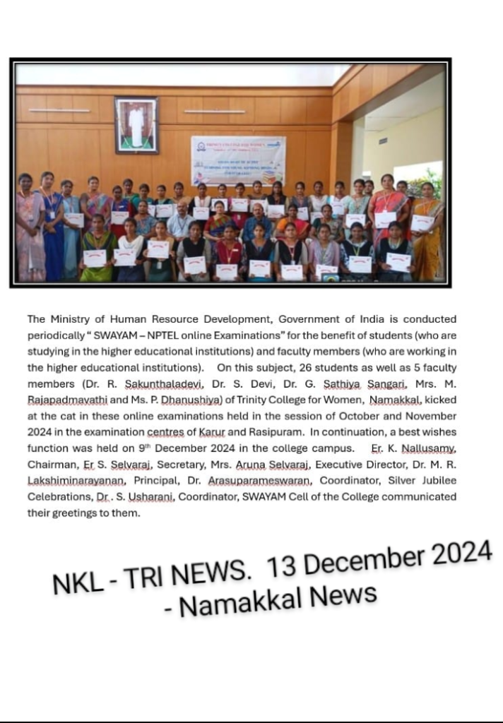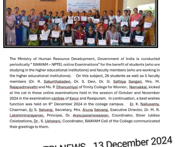 5 faculty members and 26 students of our College have passed their SWAYAM NPTEL courses for the session of July to October 2024