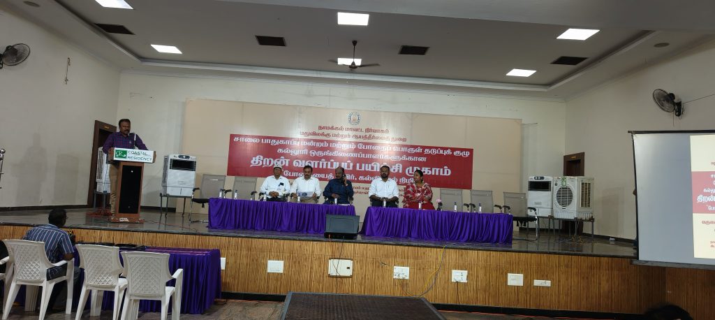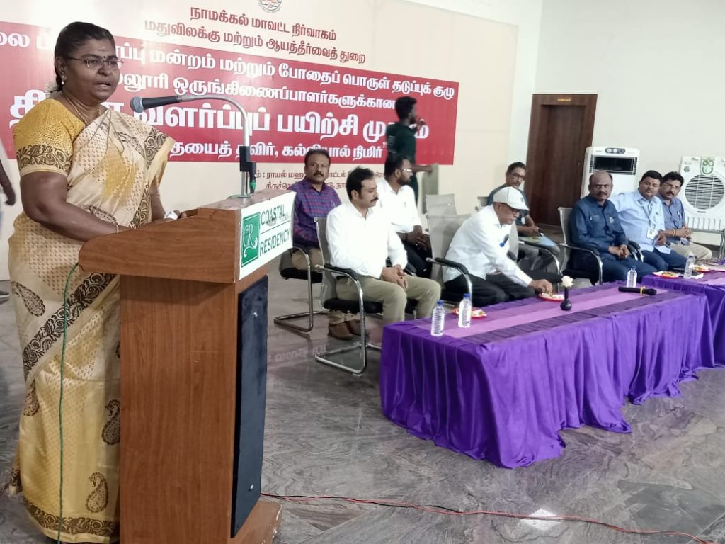 ,Under the chairmanship of District Collector Dr. S. Uma, IAS, the Additional Superintendent of Police (Commissionerate of Prohibition and Exercise), Namakkal District, Mr. R. Dhanrasu, Mr. C.R. Rajesh Kannan, District Liaison Officer, Anti-Drug Club, Namakkal, Mr. S. Sathishkumar, District Child Protection Officer, Namakkal, Mr. K.C. Arun, Designated Officer, Food Safety, Mr. M. Pugazhendi, Deputy Commissioner, Excise Duty, Mr. A.K. Murugan, Regional Transport Officer, Namakkal South, Mr. E.S. Murugesan, Regional Transport Officer, Namakkal North, Mr. A. Narasimmamani, Safety Trainer, Madurai, Dr. M. Govindaraju, Principal, Namakkal Kavignar Ramalingam Government Arts College for Women, Namakkal, Dr. N.P. Lalitha, Namakkal Tobacco Cell, Namakkal, Mr. N. Manikandan, Social Worker, District Child Protection Unit, Mrs. S. Archana, Psychologist, District Mental Health Programme, Namakkal and other officials participated in the meeting.