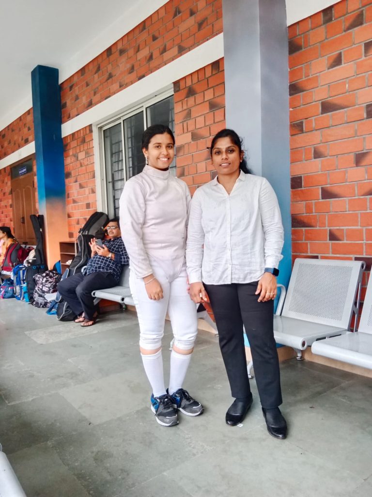 A state-level women’s fencing tournament was held on January 9, 2024, at the venue of Kathir College of Arts and Science, Wisdom Tree, Avinashi Road, Neelambur, Coimbatore. Many students from various districts in Tamil Nadu took part. Ms. D. Manju, first-year B.Sc., Nutrition and Dietetics, Trinity College for Women, Namakkal, has actively participated.  She is greeted.