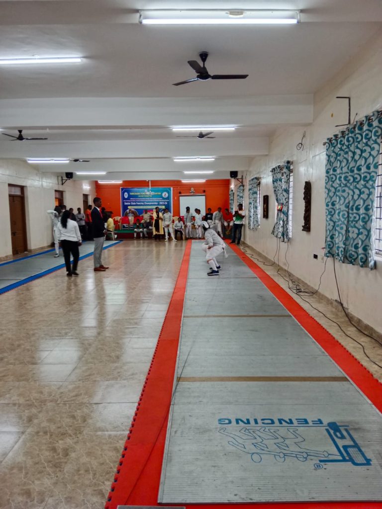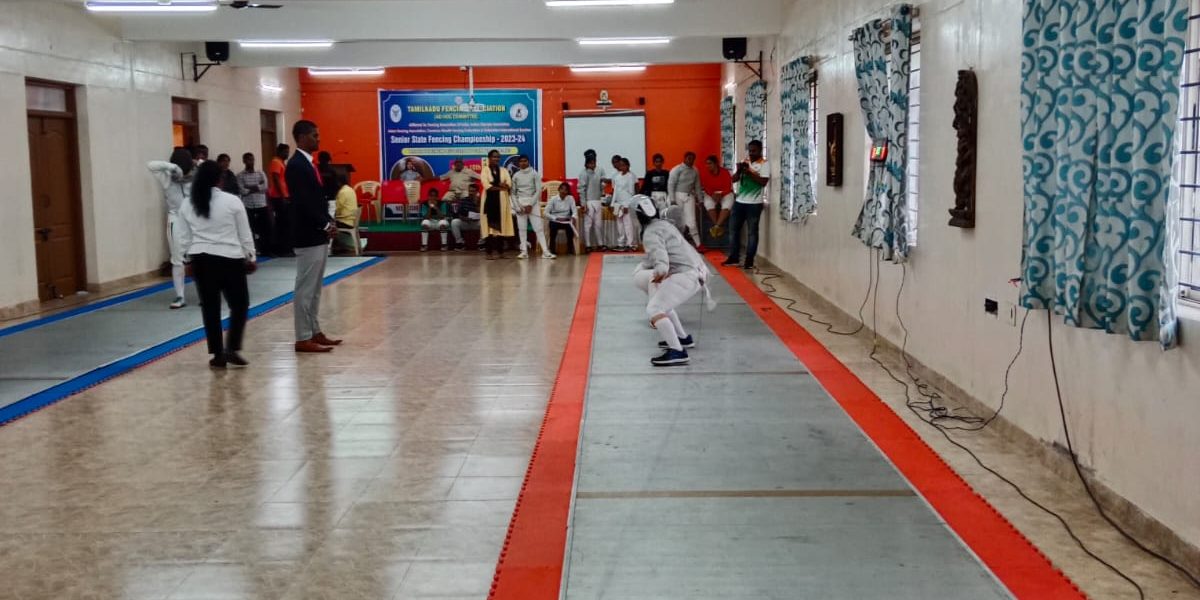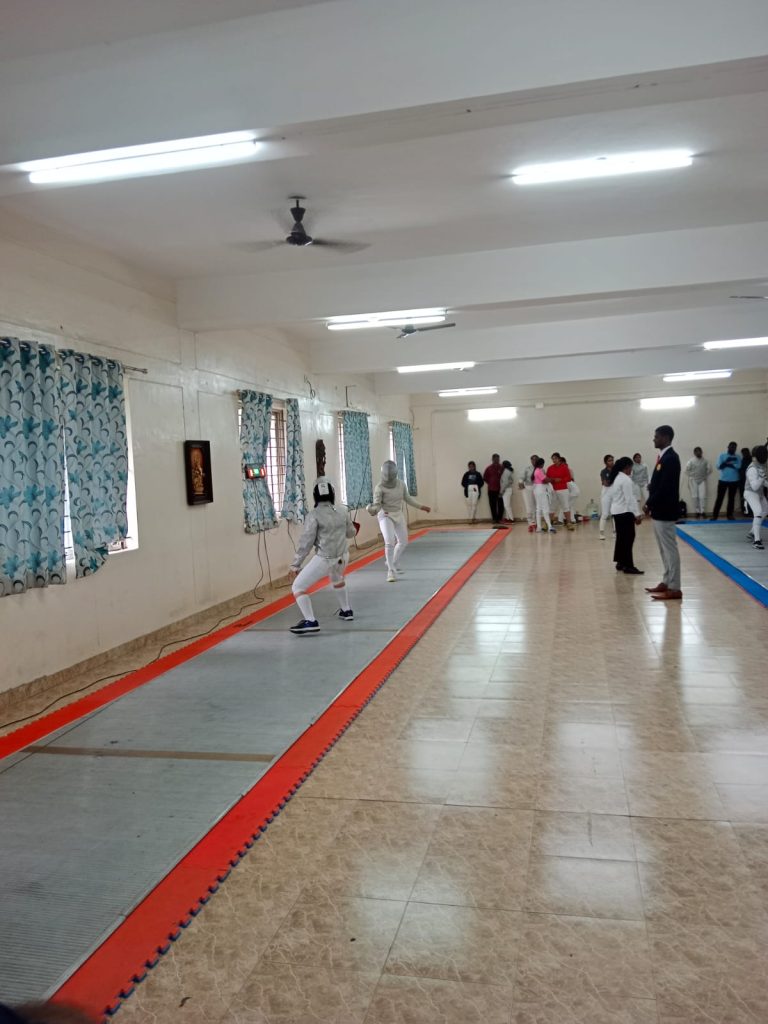 A state-level women’s fencing tournament was held on January 9, 2024, at the venue of Kathir College of Arts and Science, Wisdom Tree, Avinashi Road, Neelambur, Coimbatore. Many students from various districts in Tamil Nadu took part. Ms. D. Manju, first-year B.Sc., Nutrition and Dietetics, Trinity College for Women, Namakkal, has actively participated.