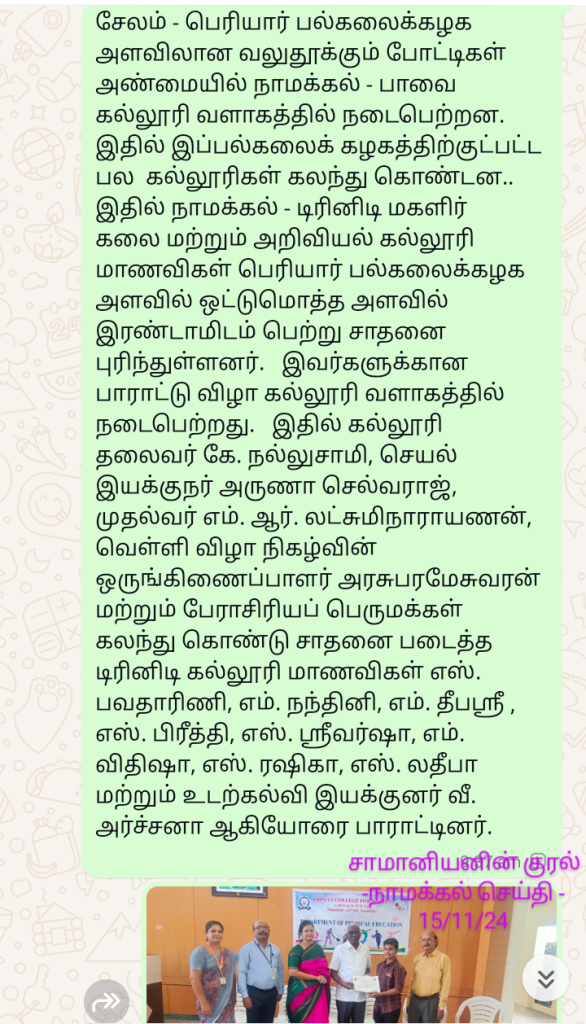 Achievements in the Periyar University Weightlifting – 05.11.2024 Paavai College, Namakkal
