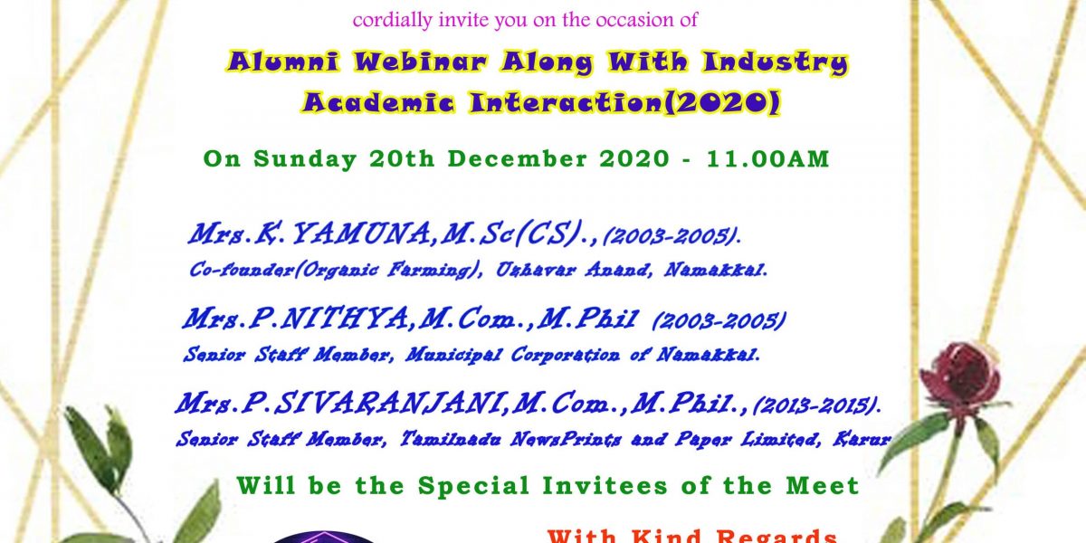 “ALUMNI WEBINAR ALONG WITH INDUSTRY ACADEMIC INTERACTION – 2020” held on 20th December 2020 (Sunday) at 11 AM through the Google Meet.