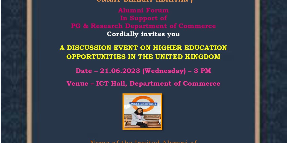 Alumni Forum in support of the postgraduate and research department of Commerce, Trinity College for Women, Namakkal organized a “Discussion event on higher education opportunities in the United Kingdom” on 21st June 2023. It was held in the place of ICT Hall, Department of Commerce of the College.