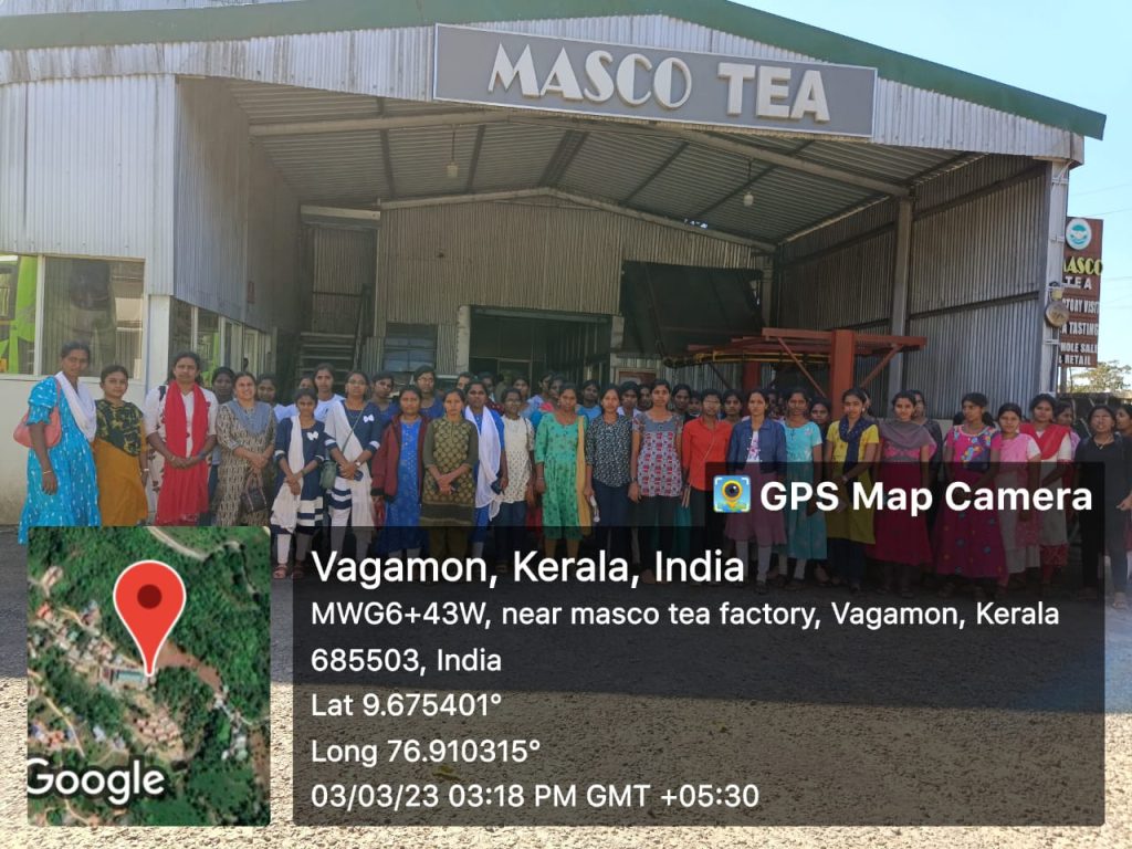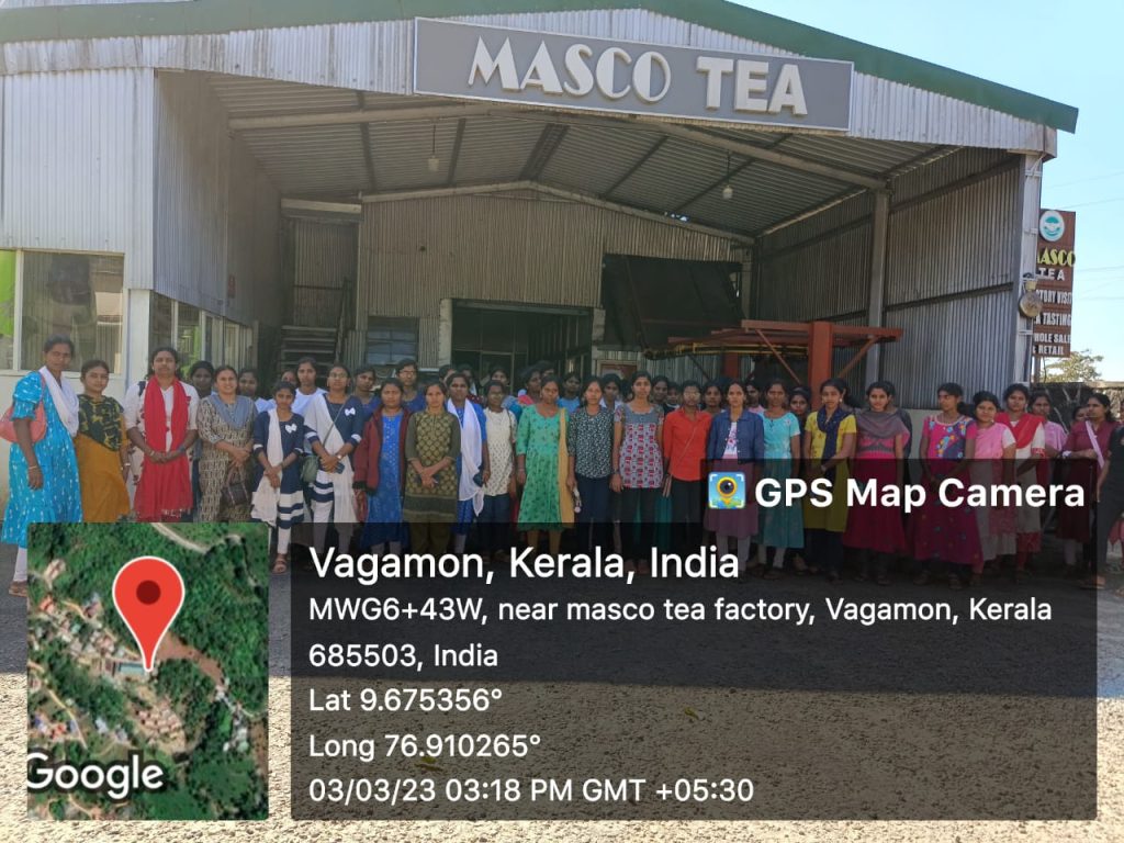 An industrial visit cum educational tour was conducted by the department of Chemistry, Trinity College for Women, Namakkal at Masco Tea Factory, Vagamon, Kottayam District in Kerala state on 03rd March 2023.