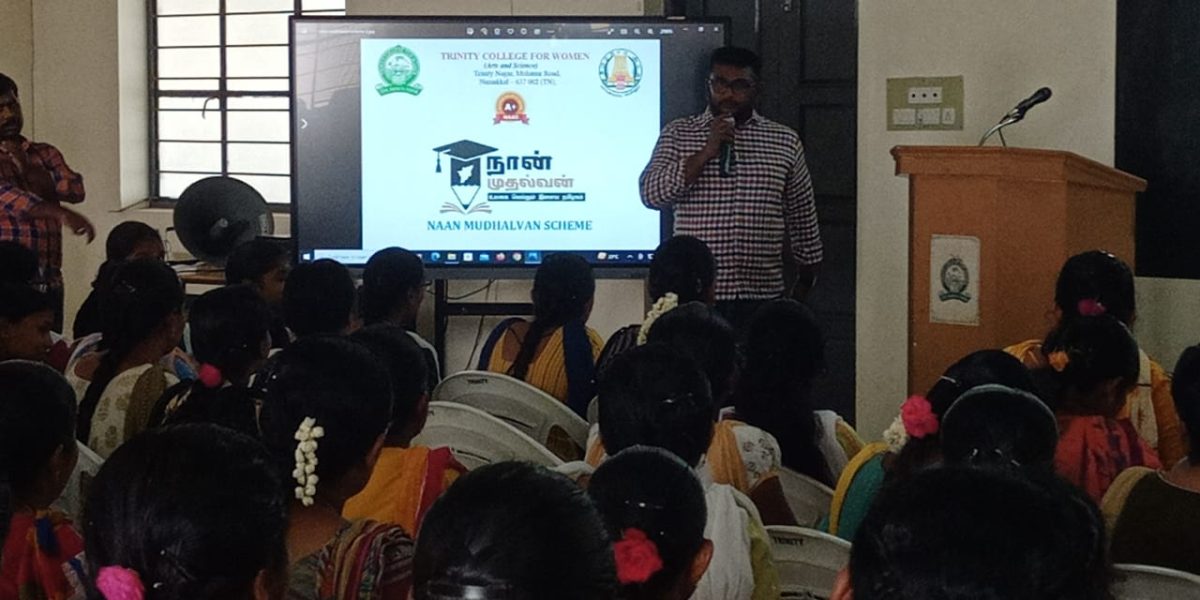 As a part of Naan Mudhalvan Scheme (I am the first), Trinity College for Women, Namakkal organized a two day event in the heading of “GST & Income Tax” on 13th & 14th March 2023. It was held in the premises of Mini Seminar Hall. Dr. R. Selvaramalingam, National Level Trainer, NSE Academy, Mumbai was the special invitee. He elucidated the various topics such as analytical skills, problem solving skills, interpersonal skills, finance and managerial service, Goods and Services Tax, Customs Duty, Direct Taxes, Cost Accounting, Financial Accounting, Management Accounting, Language proficiency for employability, fundamentals of office automation, digital marketing, capital market, etc., for the benefit of commerce students.
