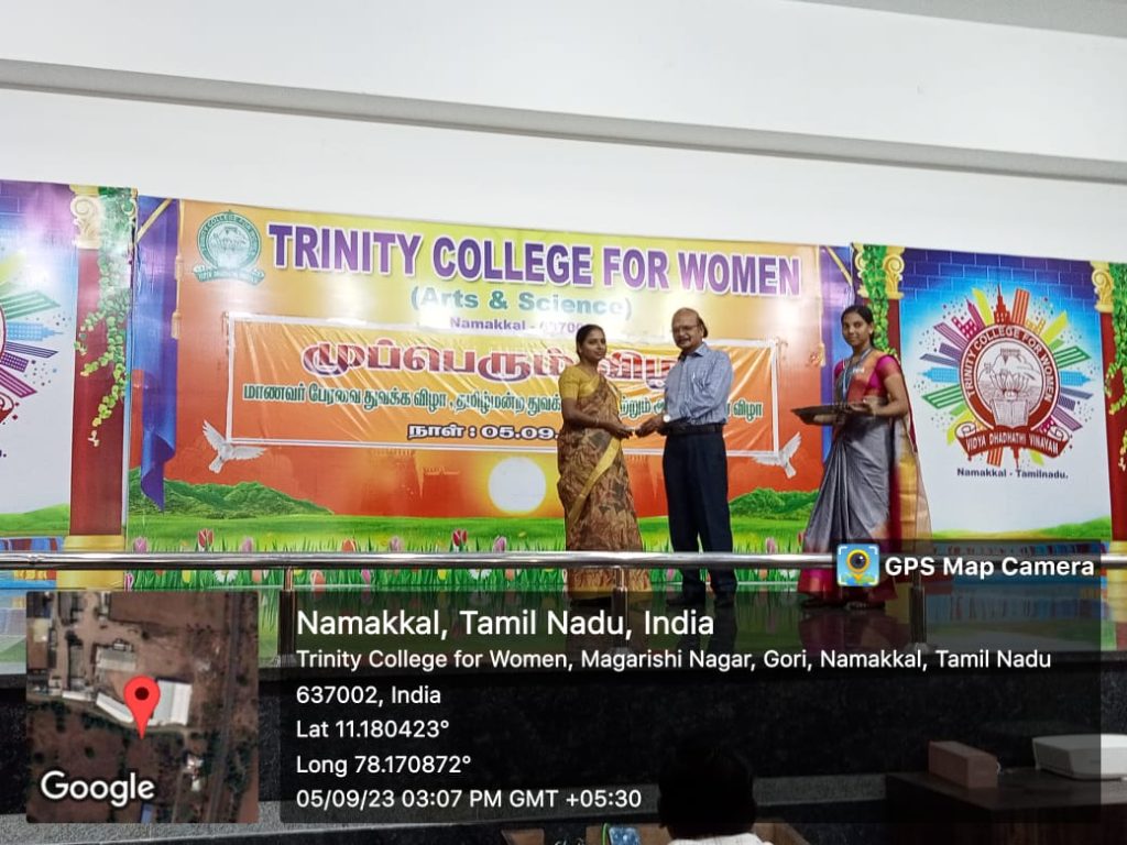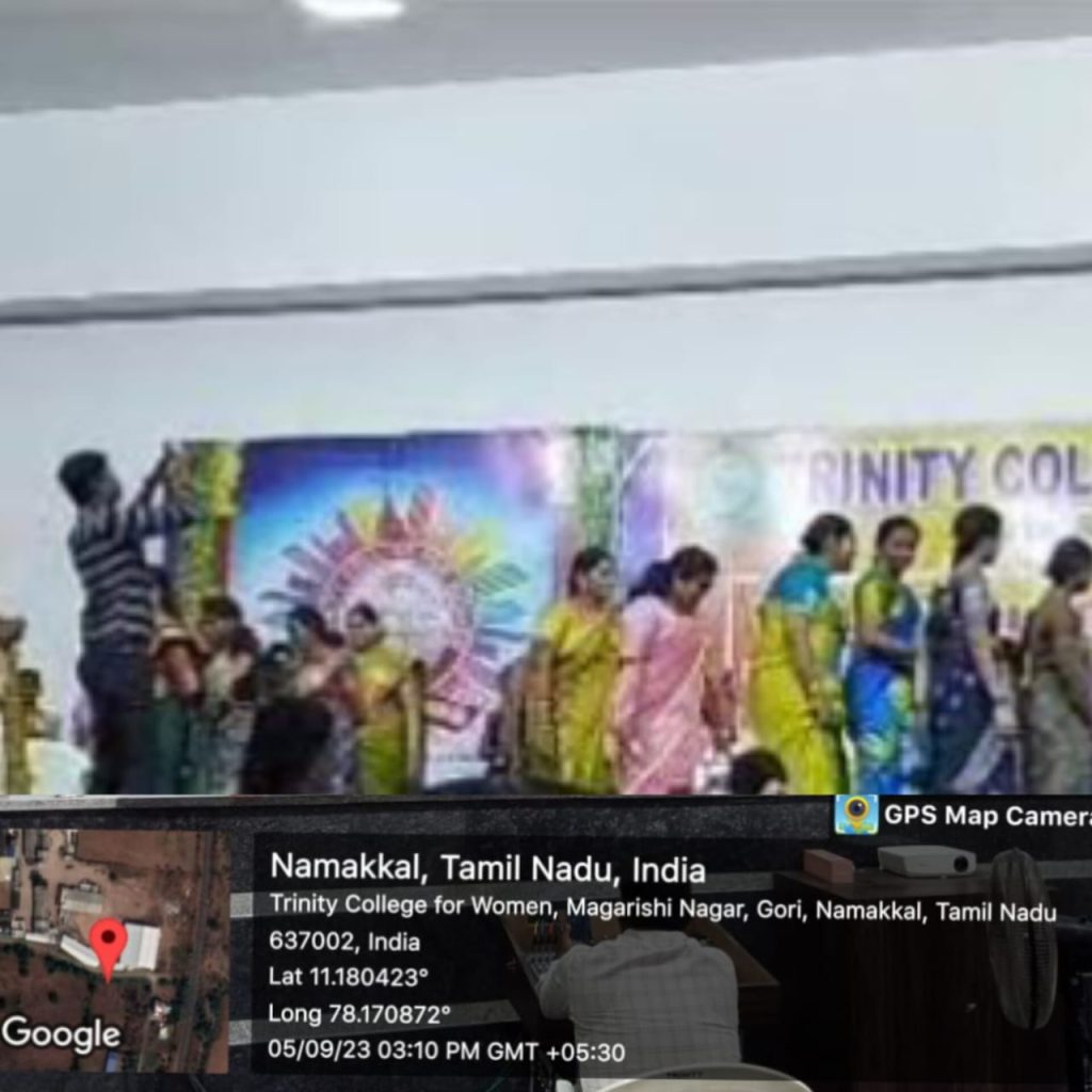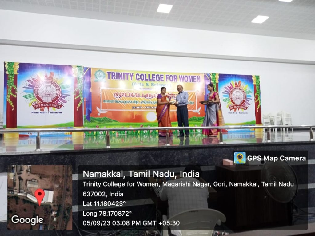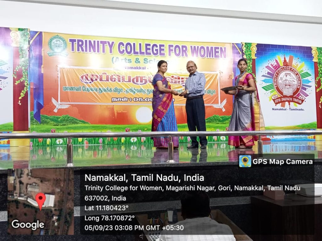 As a part of Teacher’s Day Celebrations, various games were conducted by the students of Trinity College for Women, Namakkal in place of Trinity Auditorium on 05th September 2023. Ms. M.S. Raajasri, third year B.Sc., Computer Science, Student’s Chairman of the College delivered the welcome address. Ms. I. Varshika, third year B.Sc., Computer Science, Department Secretary spoke about the teacher’s day speech, in her talk; she denoted the teacher’s sacrifice from the Pre KG to Ph.D., Ms. R. Thavanithi, second year M.A., Tamil, Department Secretary, highlighted the special of teacher’s day celebrations and she pointed out the role of teachers for the student’s life upliftment. Ms. R. Annapoorani, Fine Arts Secretary, Department of English proposed the vote of thanks.