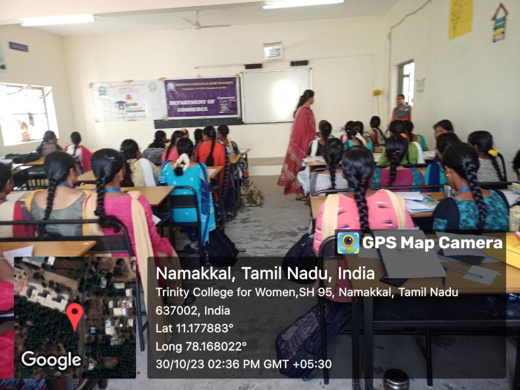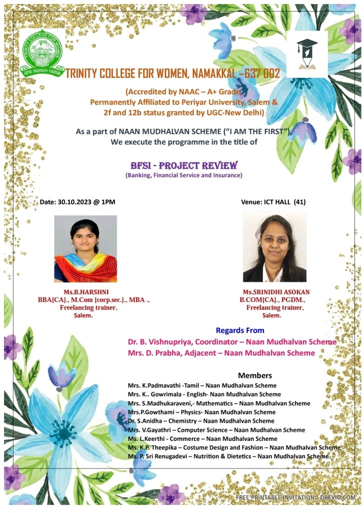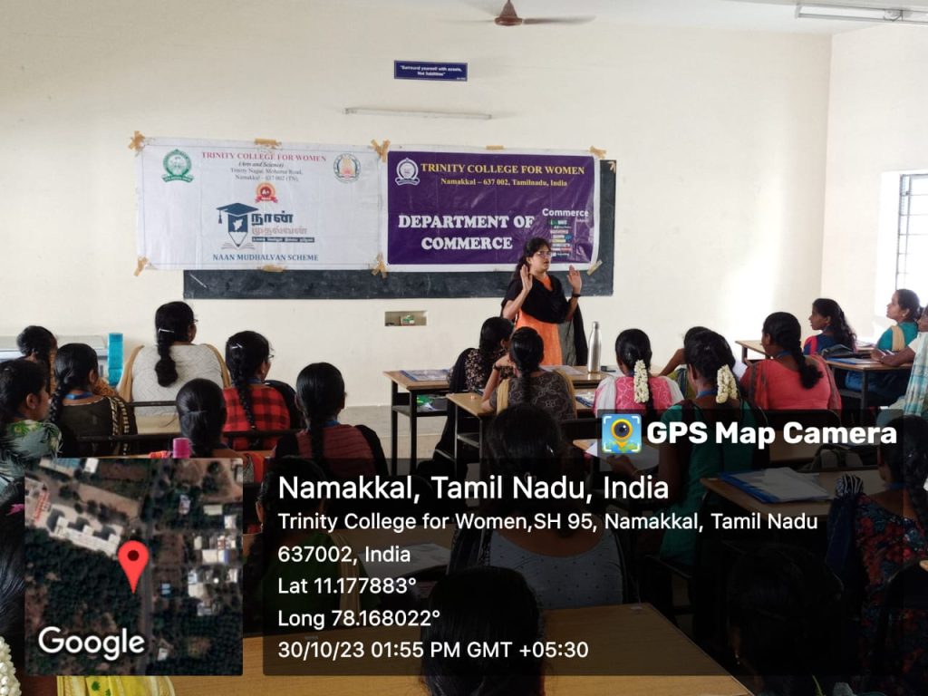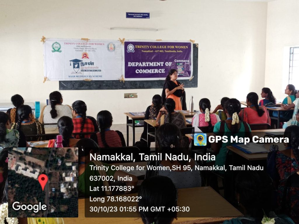 As a part of the Naan Mudhalvan Scheme, Trinity College for Women, Namakkal, executed a programme titled “BFSI: Project Overview” on October 30, 2023, on the college campus.