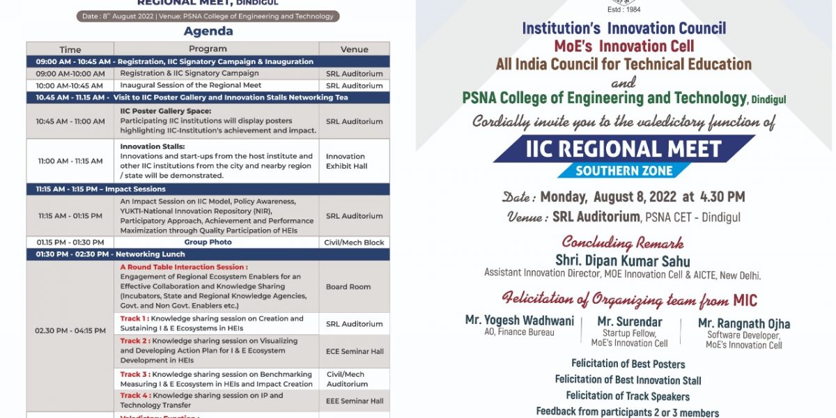 Read MoreThe Institution Innovation Council, MOE’s Innovative Cell, All India Council for Technical Education and PSNA College of Engineering & Technology, Dindigul, Tamil Nadu state jointly organized a “IIC – Regional Meet (Southern Zone) on 8th August 2022 at the venue of SRL Auditorium, PSNA College of Engineering and Technology, Dindigul. Smt. Mamta […]