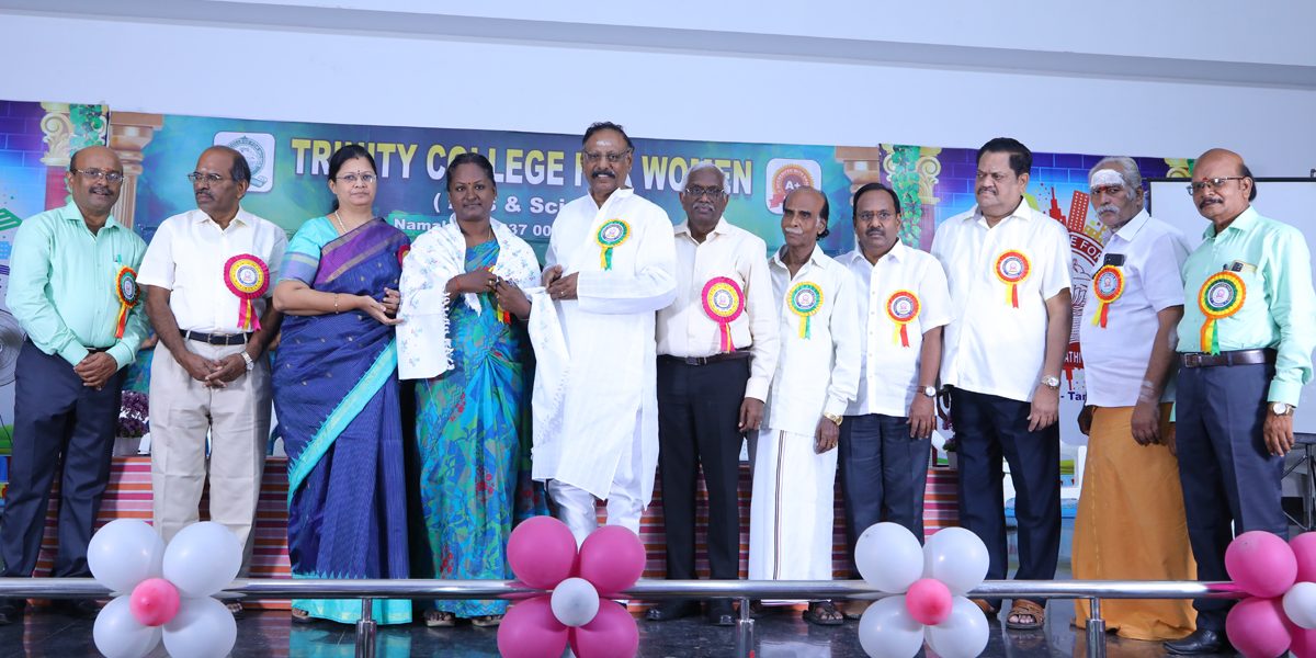 Kavignar Muthulingam, Senior Tamil Lyricist, Tamil Cinema Industry, Er. K. Nallusamy, Chairman; Dr. R. Kulandaivel, President, Trinity Academy Matric Higher Secondary School, Mr. Rama Srinivaasan, Secretary, Trinity CBSE School, Mr. P. Dhayalan, Transport Director, Trinity Educational Institutions, Er. S. Selvaraj, Secretary of the College; Mrs. Aruna Selvaraj, Executive Director; Dr. M.R. Lakshiminarayanan, Principal; Dr. Arasuparameswaran, Coordinator, Silver Jubilee Celebration Committee, the HOD’s of various departments,  Dr. R. Navamani,   Dr. M. Sasikala (Commerce), Dr. N. Elamathi (PG Computer Science), Dr. B. Lena (Mathematics), Dr. B. Lakshmi (Physics), Dr. T.K. Anuradha (PG & Research, Department of Tamil), Dr. R. Savithri (UG Tamil), Mrs. N. Thangamani (Chemistry), Mrs. K. Punitha (CDF), Mrs. R. Rupa (Nutrition and Dietetics), Mrs. L. Deepika (English), Mrs. V. Archana, Director of Physical Education, Dr. M. Selvi, Librarian, The faculty Members of Computer Science, Mr. N.S. Senthilkumar, Mrs. S. Bhuvaneswari, Dr.  S. Usharani, Mrs. S. Priya, Mrs. K. Mekala, Mrs. M. Malathi, Mrs. A. Kavitha, Dr. K. Vijayakumari, Mrs. V. Abirami, Mrs. D. Prabha, Mrs. V. Gayathri, and Mrs. P. Navajyothi.