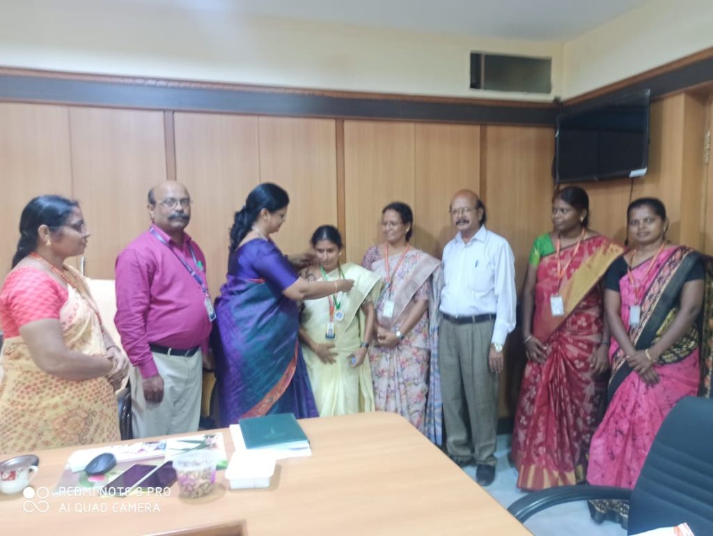 Ilakkiya Sirpi Dr. T.K. Anuradha is greeted by Er. K. Nallusamy, Chairman, Er. S. Selvaraj, Secretary, Mrs. Aruna Selvaraj, Executive Director, Dr. M.R. Lakshiminarayanan, Principal, Dr. Arasuparameswaran, Director – Academic, Mr. N.S. Senthilkumar, Administrative Officer, the faculty of Tamil Dr. R. Savithri, Mrs. S. Jayamathi, Dr. A. Latha, Dr. B. Vishnupriya, Dr.C. Gobiya, Dr. R.A. Anitha, Mrs. S. Hemalatha, Mrs. K. Barathi, Dr. T. Geetha, Mrs. K. Padmavathi and Dr N. Subalakshmi.
