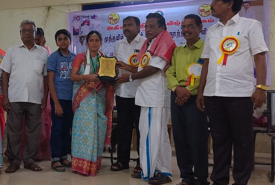 Dr. T.K. Anuradha, Assistant Professor and Head, Department of Postgraduate and Research Tamil, Trinity College for Women, Namakkal, has obtained the award of “Elakkiya Sirpi” – இலக்கிய சிற்பி (Literary Sculptor) on October 28, 2023. This award was given by the All India Tamil Association (அகில இந்திய தமிழ்ச் சங்கம்).