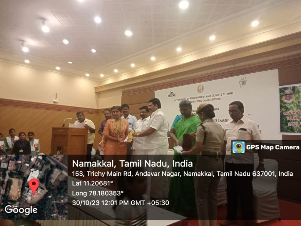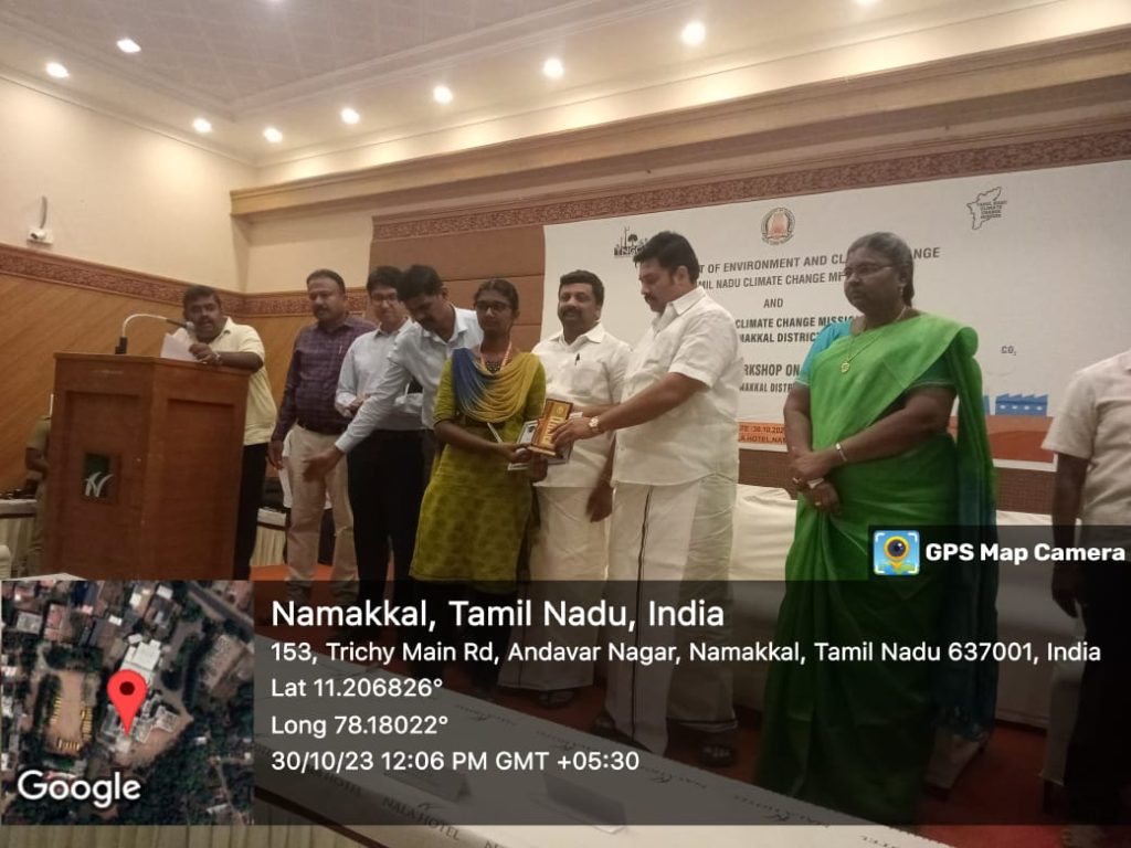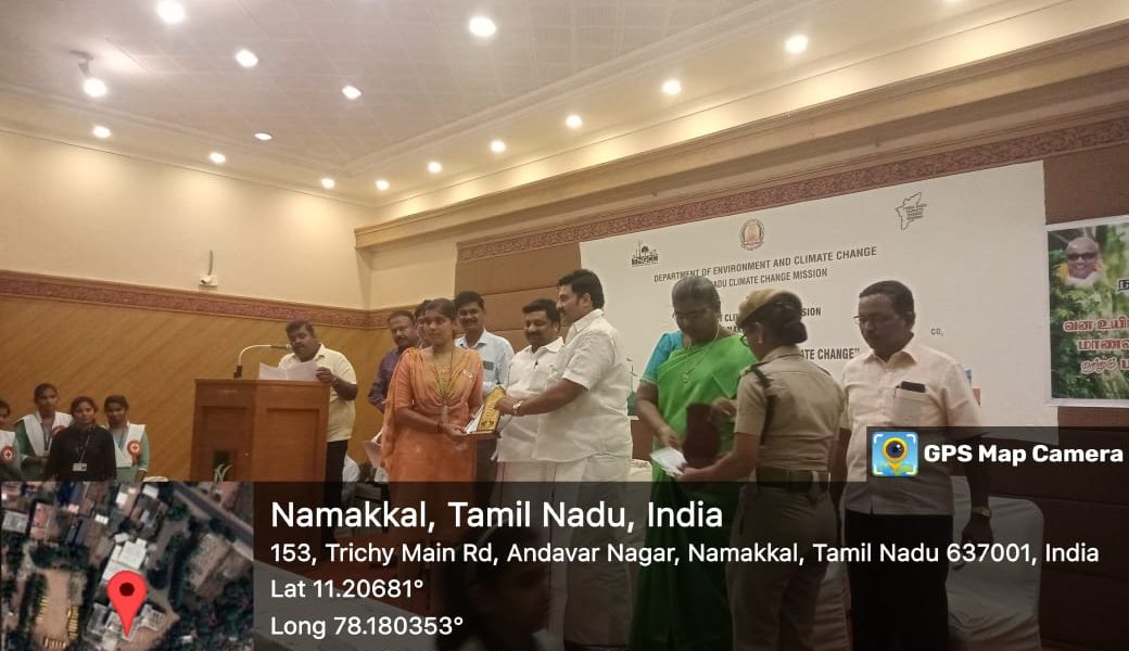 Mr. Ma. Mathivendan, Honourable Minister for Forest, Government of Tamil Nadu; Mr. K. R. N. Rajeshkumar, Member of Parliament in Rajya Sabha; Mr. Manish Meena, Assistant Mission Director, Tamil Nadu Climate Change Mission; The Department of Environment, Climate Change, and Forests, Government of Tamil Nadu; and Mrs. S. Uma, District Collector of Namakkal, also spoke on that occasion. All the special invitees are conveyed their greetings to Ms. M. Sandhiya and Ms. S. Soniya for their achievement.