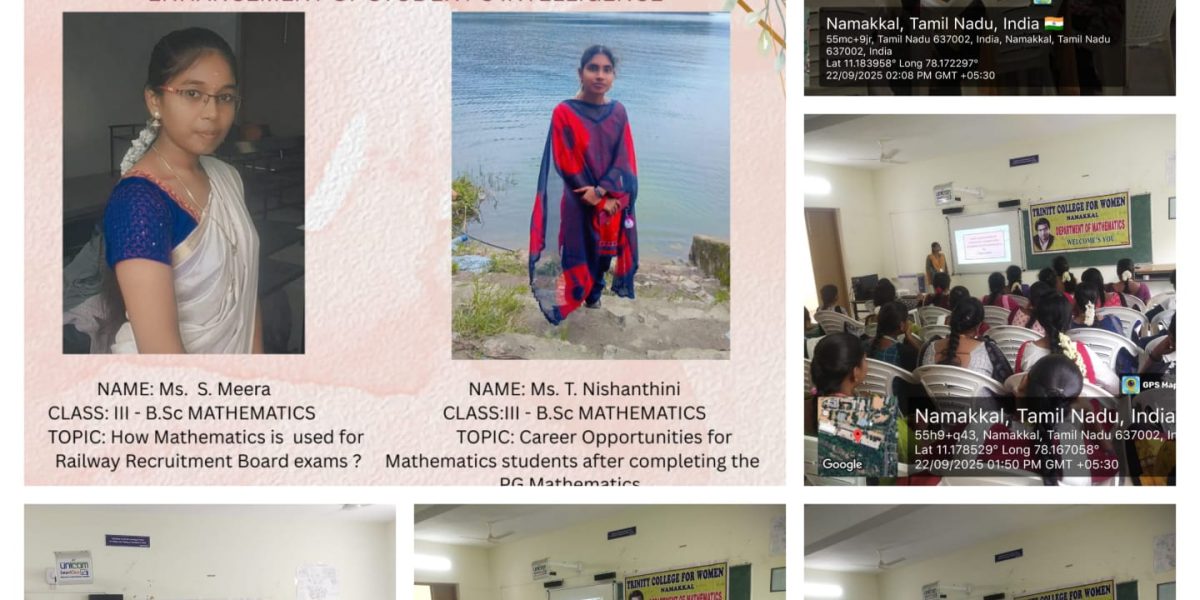 Read MoreNaan Mudhalvan Programme on “Food Safety and Quality Management” Under the Naan Mudhalvan, Trinity College for Women, Namakkal conducted a programme titled “Food Safety and Quality Management” on 2nd, 10th, 16th, 23rd, 30th July, 6th August, 3rd, 17th & 24th September 2025. Mr. Dineshkumar – N, Trainer, Rareminds, Bengaluru was the resource person. He elucidated various topics like Food Quality […]