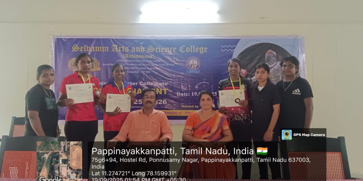 Read MoreCongratulations to the players of Fencing The Periyar University Inter-Collegiate Fencing Women Tournament (2025-2026) was held in the premises of Selvamm Arts and Science College (Autonomous), Namakkal on 19.09.2025. Many Arts and Science Colleges affiliated to Periyar University Salem from the districts of Salem, Dharmapuri, Namakkal and Krishnagiri enthusiastically took part The […]