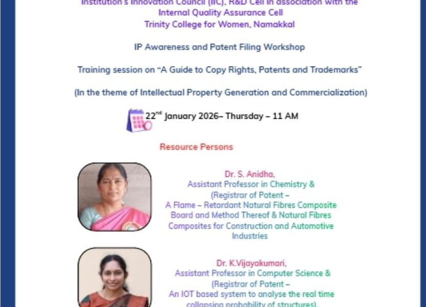 Read MoreIIC Workshop on Patent Filing The Institution’s Innovation Council, in association with the Internal Quality Assurance Cell, Trinity College for […]