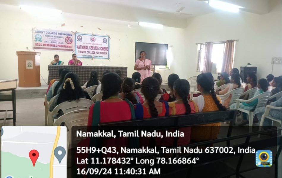 Read MoreAnti-Drug Awareness Programme Anti Drug Cell and National Service Scheme, Trinity College for Women, Namakkal conducted an awareness programme titled “Drug Ends All Dreams (DEAD)” on 16th September 2024. Dr. M. Sasikala, NSS Programme Officer (Unit 1), Trinity College for Women, Namakkal spoke throughout the session and emphasised the role of students in keeping the […]