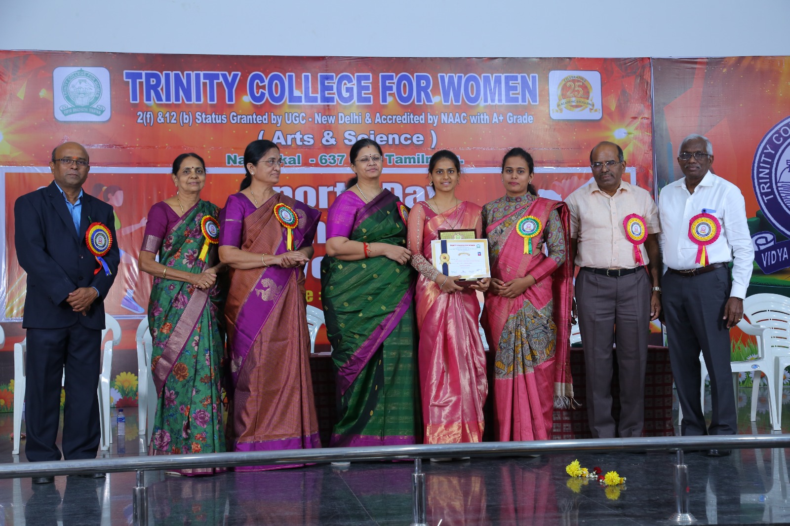 Dr R. Kulandaivel, President, Trinity Academy Matric Higher Secondary School, Namakkal, highlighted the importance of higher education for women. Mr S. Selvaraj, Secretary, and Mrs Aruna Selvaraj, Executive Director of the College, offered the address of felicitation.