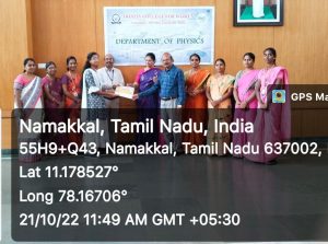 The faculty members of Physics Dr. B. Lakshmi, (HOD of Physics), Mrs. B. Kavitha, Dr. R. Sakunthaladevi, Mrs. S. Mohanapriya, Mrs. K. Akila, Mrs. V. Kalaivani and Ms. K. Saranya were the judges of the above said events.