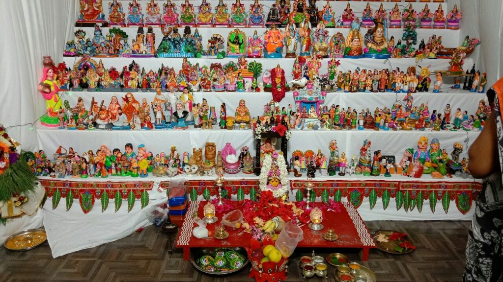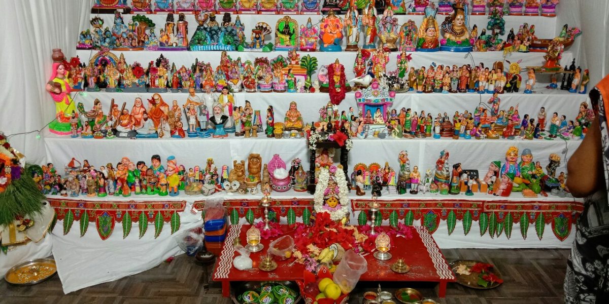Trinity Educational Institutions (Trinity Academy Matric Higher Secondary School, Trinity International (CBSE) School and Trinity College for Women), Namakkal celebrated Ayutha Pooja on 14th October 2021, by arranging Kolu for 9 days in the premises of Trinity Academy Matric Higher Secondary School from the day of Mahalaya Ammavasai until Vijayadasami. On this special day all the laboratories, class rooms, office and the institutions buses were beautified with mango leaves, plantain trees and glazing papers. Fruits, puffed rice, toast, sweet porridge, roasted gram and groundnut were distributed for all the participants.