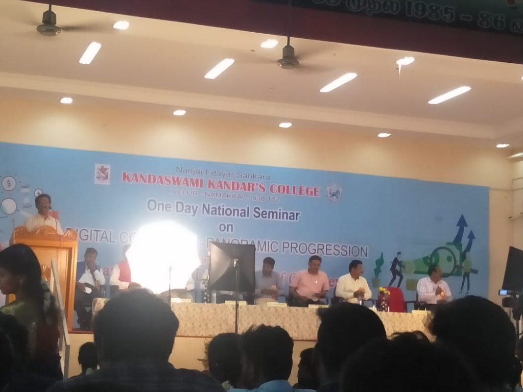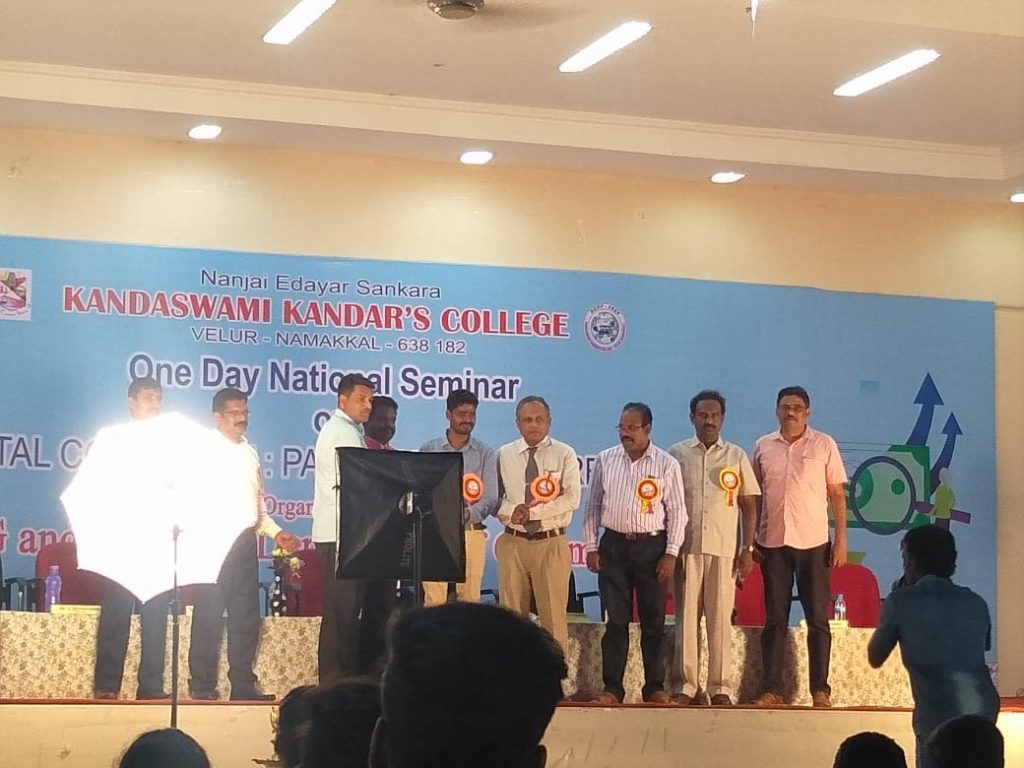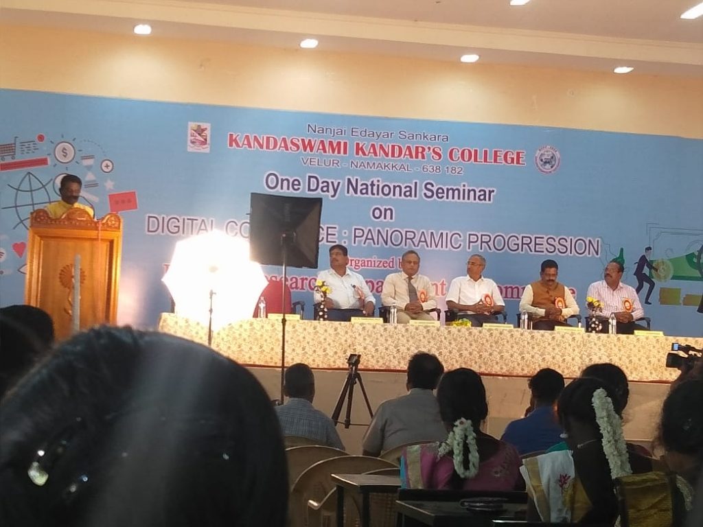 The PG and Research Department of Commerce, Kandaswami Kandar’s College, Paramathi-Velur, Namakkal District, Tamil Nadu state is organized a one day national level seminar entitled “Digital Commerce : Panoramic Progression” on 5th March 2020 in the Pon Shanmuga Sundaram Memorial Hall (College premises). The sub themes of the conference were digital accounting system in India, digital marketing strategy and implementation, impact of digital media on rural markets, digital workforce transformation – HR challenges, digital supply chain management and its challenges, fourth industrial revolution for digital commerce, digital taxation – goods and service tax in India, digital economy driven support business development, challenges : M-Commerce Vs E-Commerce, recent changes and development of digital business.