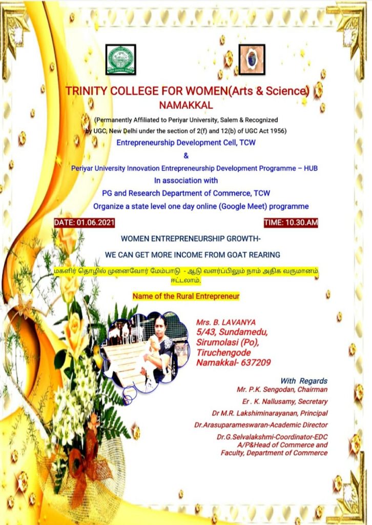 This programme was compiled by Mrs. G. Sathiyasangari, Assistant Professor in Commerce of our College. Mr. N.S. Senthilkumar, Administrative Officer, The faculty members of Commerce Mrs. G. Nithya, Dr. L. Tamilselvi, Dr. S Devi,. Dr. M. Rajapadmavathi, Dr. R. Suba and Dr. S. Tamilselvi were attended in that online event.