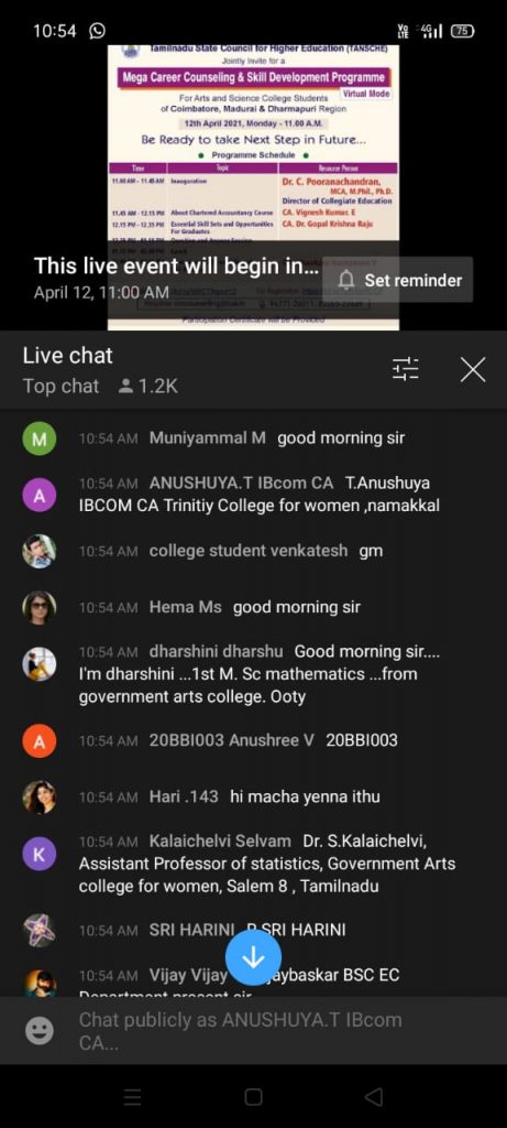 The faculty members of Commerce Dr M Sasikala, Mrs. G. Nithya, Dr L Tamiselvi, Mrs. G. Sathyasangari, Mrs. D. Valarmathi, Dr S Devi, the faculty of Computer Science Mrs. R. Navamani, Mr. N.S. Senthilkumar and Mrs. S. Usharani attended that webinar event.