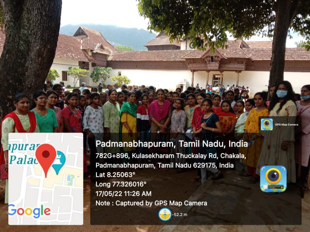 One of the main advantages of college excursions is the interactive session during these trips. These excursion trips will be helpful for students to freely interact with friends, teachers and others. In this regard, the department of Commerce students (105 No’s) and the five staff members of Trinity College for Women, Namakkal have seen the various places of Kanyakumari district on 17.05.2022. They have seen the places of Kumari Kutralam (Thirparappu Falls), Padmanabhapuram Palace, Sanguthurai Beach, Mathoor Thottipalam, Nagercoil and Kanyakumari. The faculty members of Commerce Dr. G. Selvalakshmi, Dr. M. Sasikala, Dr. G. Sathiya Sangari, Mrs. M. Rajapadmavathi and Dr. S. Tamilselvi accompanied with our students of B.Com., B.Com.,with Computer Applications and M.Com, Students.