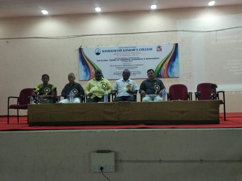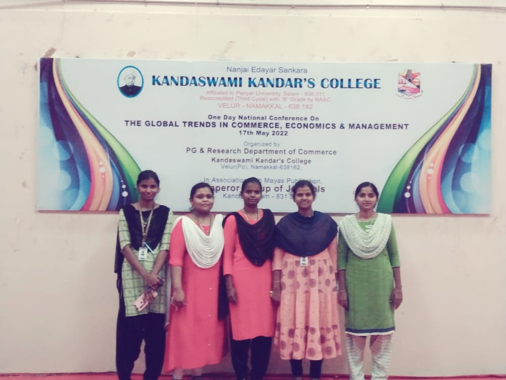 The Post Graduate and Research Department of Commerce, Kandaswami Kandar’s College, Paramathi-Velur, Namakkal district in association with MAYAS Publications, Kancheepuram organized a one day national conference entitled “The Global Trends in Commerce, Economics and Management” on 17th May 2022