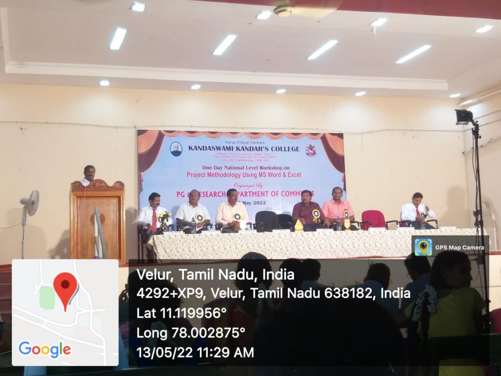 Guru’s Academy of Commerce, Erode and Post Graduate & Research Department of Commerce, Kandaswami Kandar’s College, Paramathi-Velur, Namakkal district jointly organized a one day national level workshop entitled “Project Methodology using MS Word & Excel” on 13.05.2022.