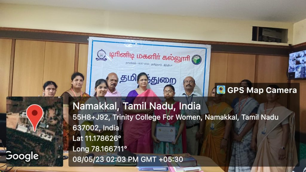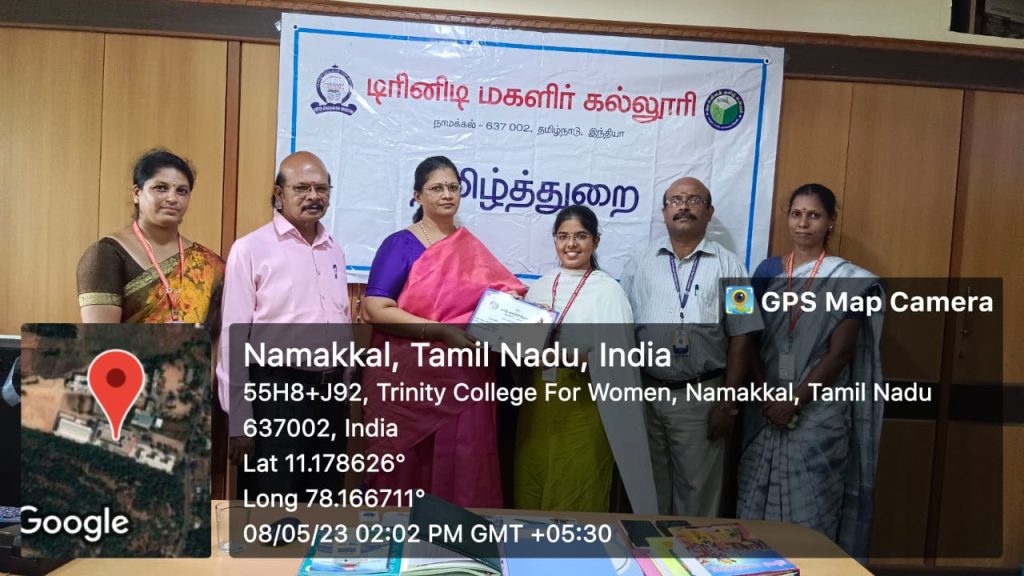 In continuation, a felicitation function was held on 08.05.2023 on the campus of Trinity College for Women, Namakkal.