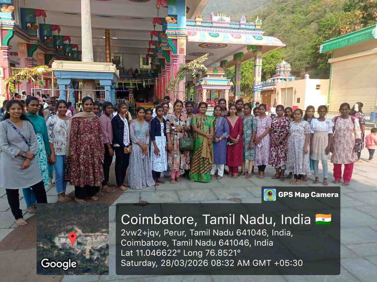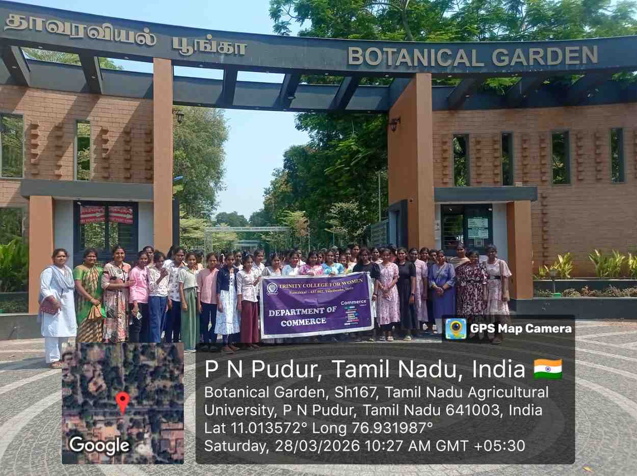 On Saturday, March 28, 2026, our 73 students, along with four faculty members (Dr. M. Sasikala, Dr. G. Sathiya Sangari, Mrs. M. Rajapadmavathi, and Mrs. A. Rajeswari) from the Commerce Department of Trinity College for Women, Namakkal, went on an educational trip to Coimbatore. First, they worshiped Lord Arulmigu Balasubramaniya at Maruthamalai. Second, they saw the Botanical Garden at Tamil Nadu Agricultural University, Coimbatore. Third, they visited the Isha Yoga Centre in Boluvampatti village, at the foothills of the Velliangiri Mountain in Coimbatore. Finally, students and faculty members purchased electrical appliances, dress materials, footwear, gift products, etc., at Brook Field Mall, Sukrawarpet, Ramnagar, Coimbatore.
