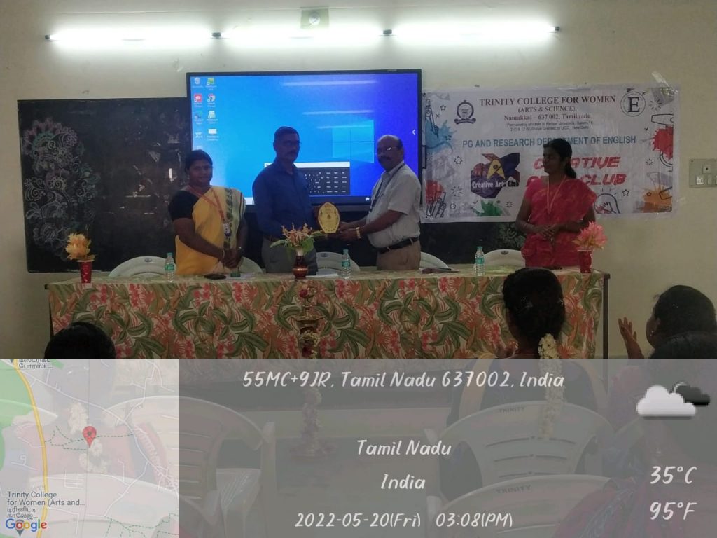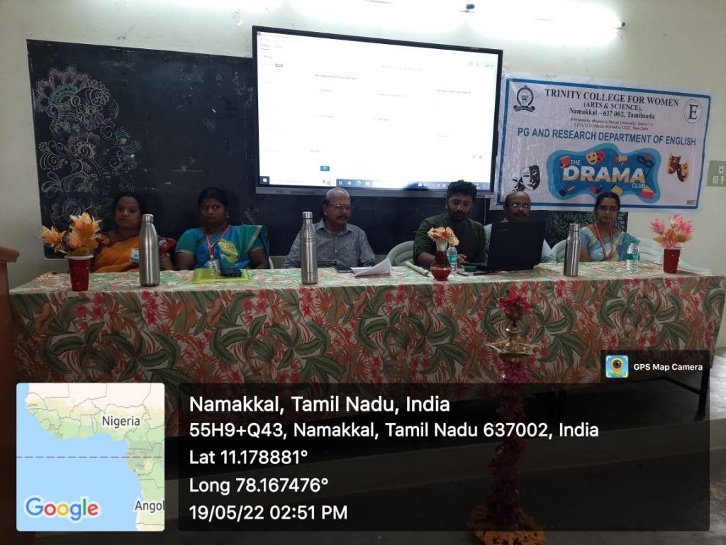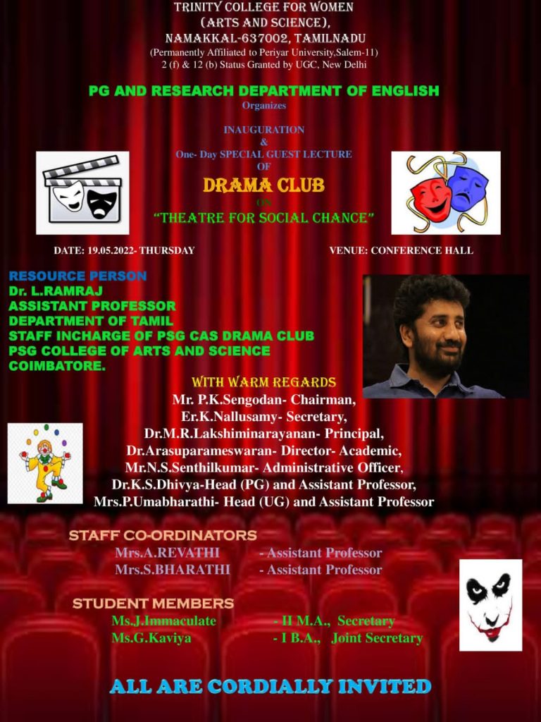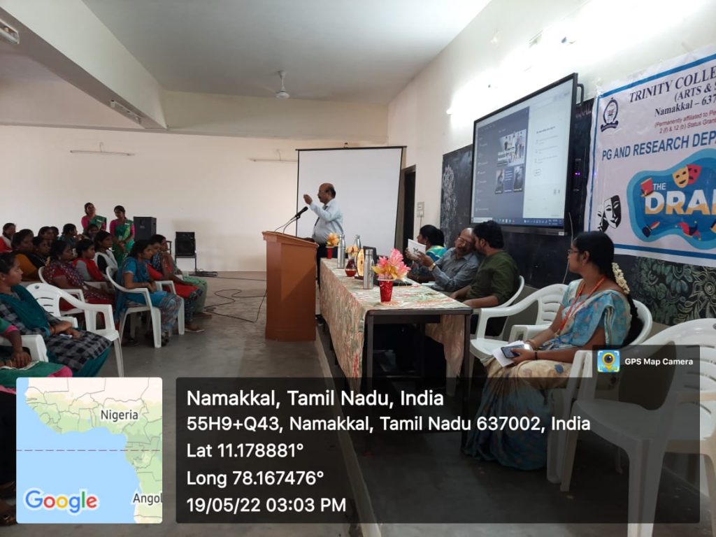 The Post Graduate Department of English, Trinity College for Women, Namakkal conducted a special lecture programme in the title of “Theatre for social change” on 19.05.2022