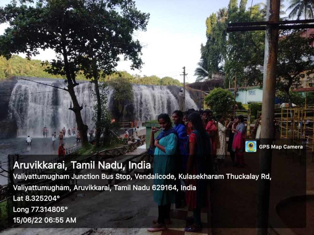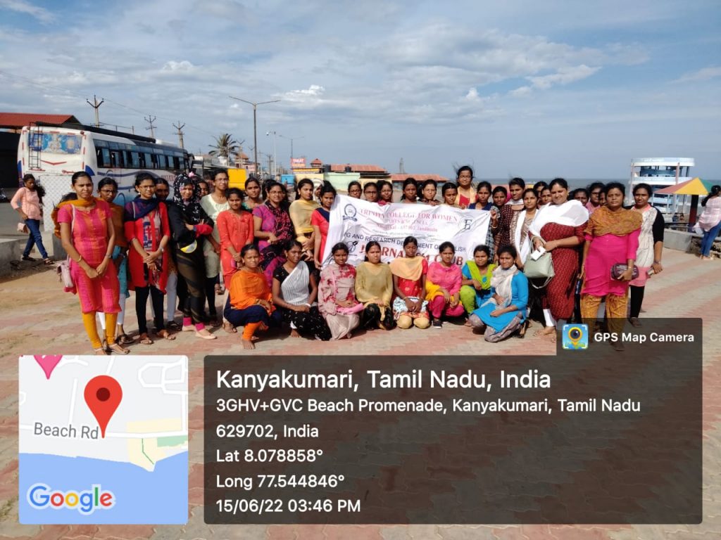 ***60 Students of English (Both Undergraduate & Postgraduate) along with 3 faculty members have carried out a one day trip (Kanyakumari District) in the places of Thirparappu Falls, Aruvikkarai, Mathur Thottipalam, Temples of Anjaneyar & Thanumalayan in Suchindram and Vivekanandar Rock, Valluvar Statue and Beach in Kanyakumari on 15th June 2022. The faculty Members of English Mrs. P. Umabharathi, Mrs. R. Banupriya and Mrs. R. Priyadharshini were the caretakers.