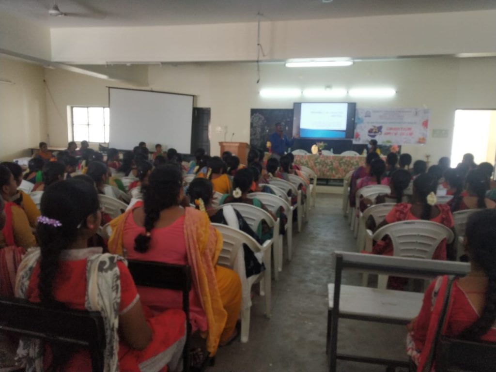 This programme was arranged by the faculty members of English Dr. K.S. Dhivya, Mrs. G. Kannagi, Ms. S. Poornima, Mrs. A. Revathi, Mrs. L. Deepika, Mrs. R. Banupriya, Mrs. P. Umabharathi, Mrs. S. Bharathi, Mrs. S. Malarkodi, Mrs. S. Sreevidhya. Mrs. R. Priyadharshini and Mr. N.S.Senthilkumar, Administrative Officer. More than 250 students of English both B.A., English and M.A., English took part.