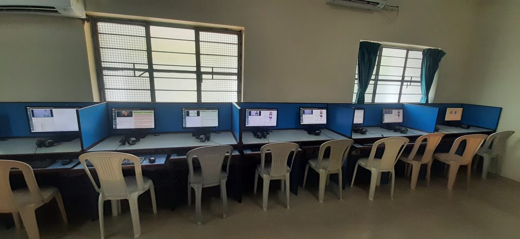 English Language Laboratory Software is a class room based solution which is installed on the computer in the classroom and the content can be accessible in the respective class room system. The English Language is one of the fastest communication methods and it is connecting with people across the world. Our College has a modern English Communication Laboratory for the benefit of our students.
