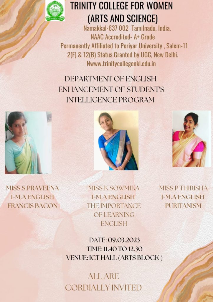 | 02 | 09.03.2023 | English | Francis Bacon | Ms. S. Praveena, I M.A., English |