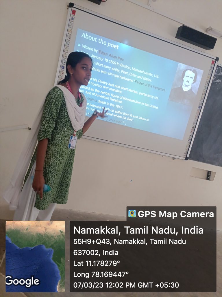 | 01 | 07.03.2023 | English | The Raven | Ms. T. Saridha, I M.A., English |